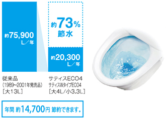 強い洗浄力はそのままに、大幅に洗浄水量を減らした超節水トイレなら、水を大切に使えて、水道代も節約できます。