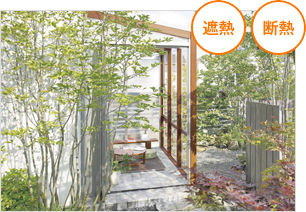 リビングに連続してガーデンルームを設置すると、冬場はリビングの冷え込みを抑え、省エネルギー効果を発揮します。