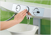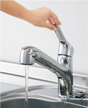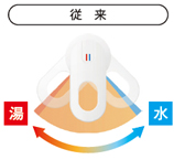 使いやすいハンドル位置を「水」にすることで、ムダなお湯の使用を低減します。